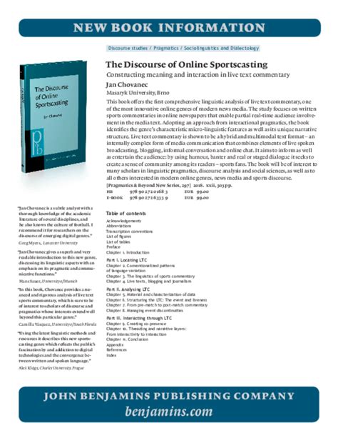 Read Online The Discourse of Online Sportscasting: Constructing meaning and interaction in live text commentary Doc